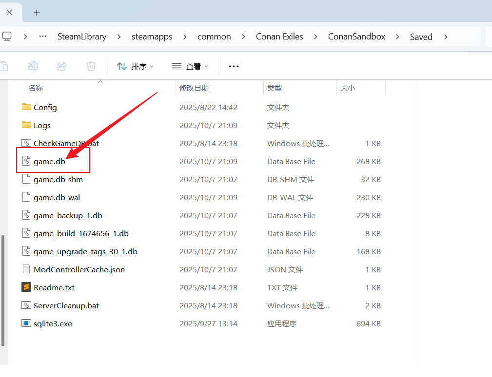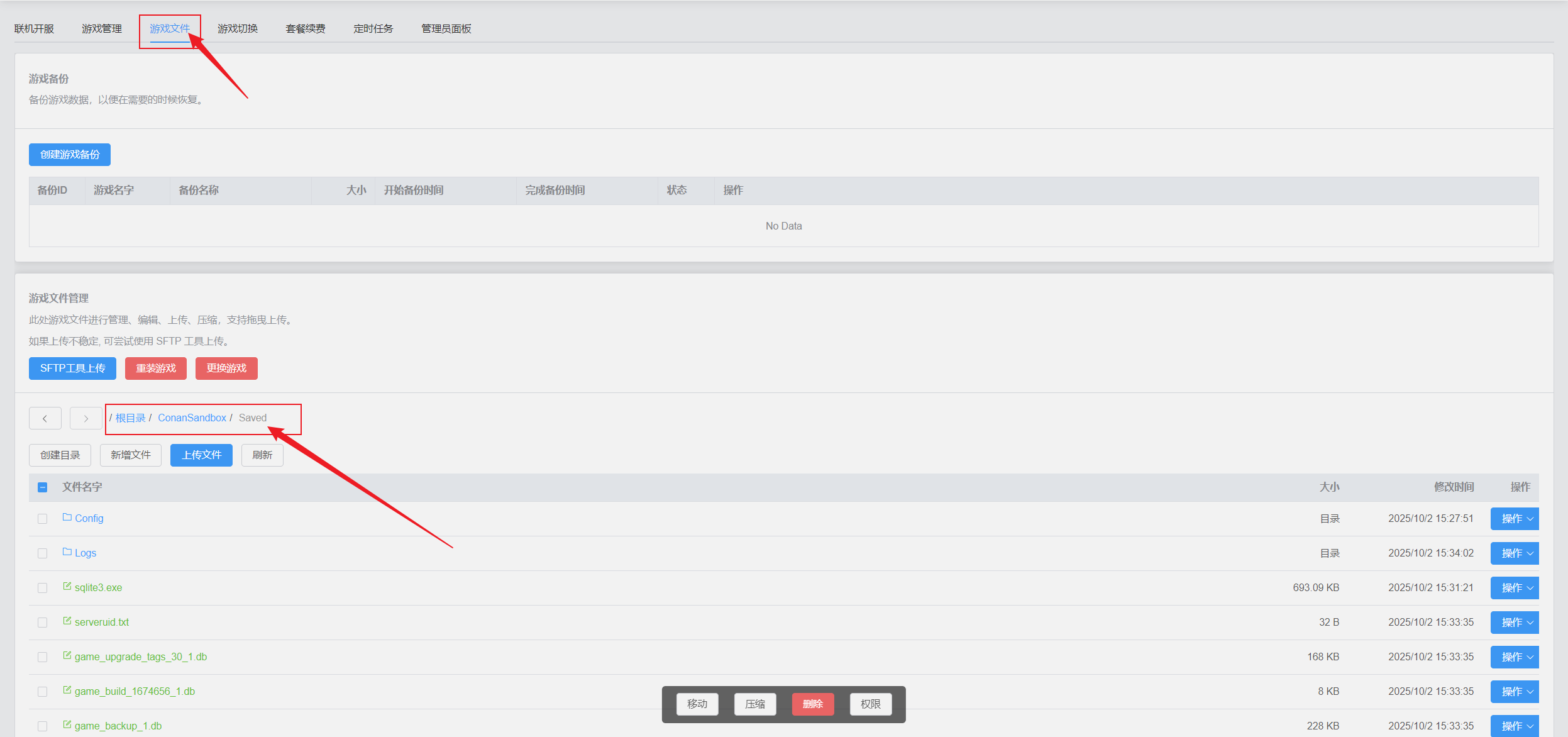 1.打开柯南本地文件 2.找到本地存档位置,复制game.db文件路径:\ConanSandbox\Saved 3.到面板中,进入相同路径,将game.db文件上传进去(如果当前已经存在相同名字的文件,请先删除)作者:jiao 创建时间:2025-10-07 20:39最后编辑:jiao 更新时间:2025-12-08 19:24
