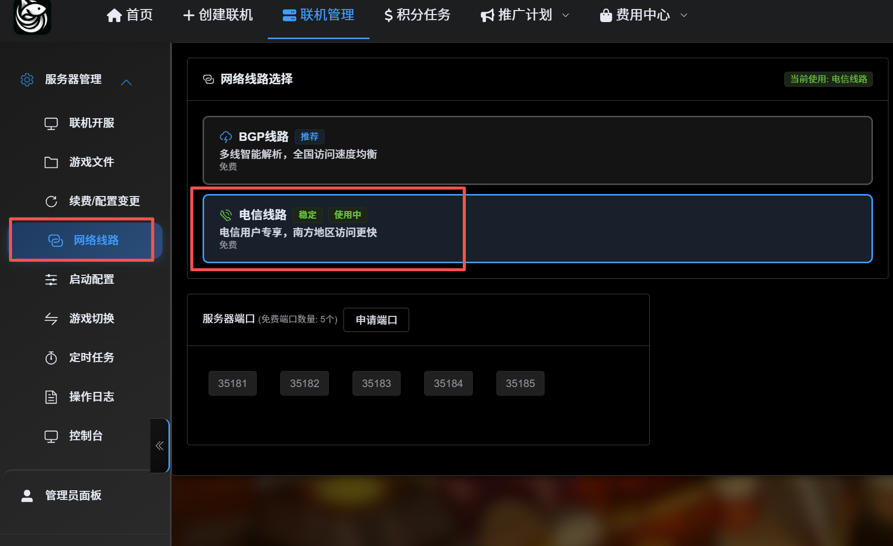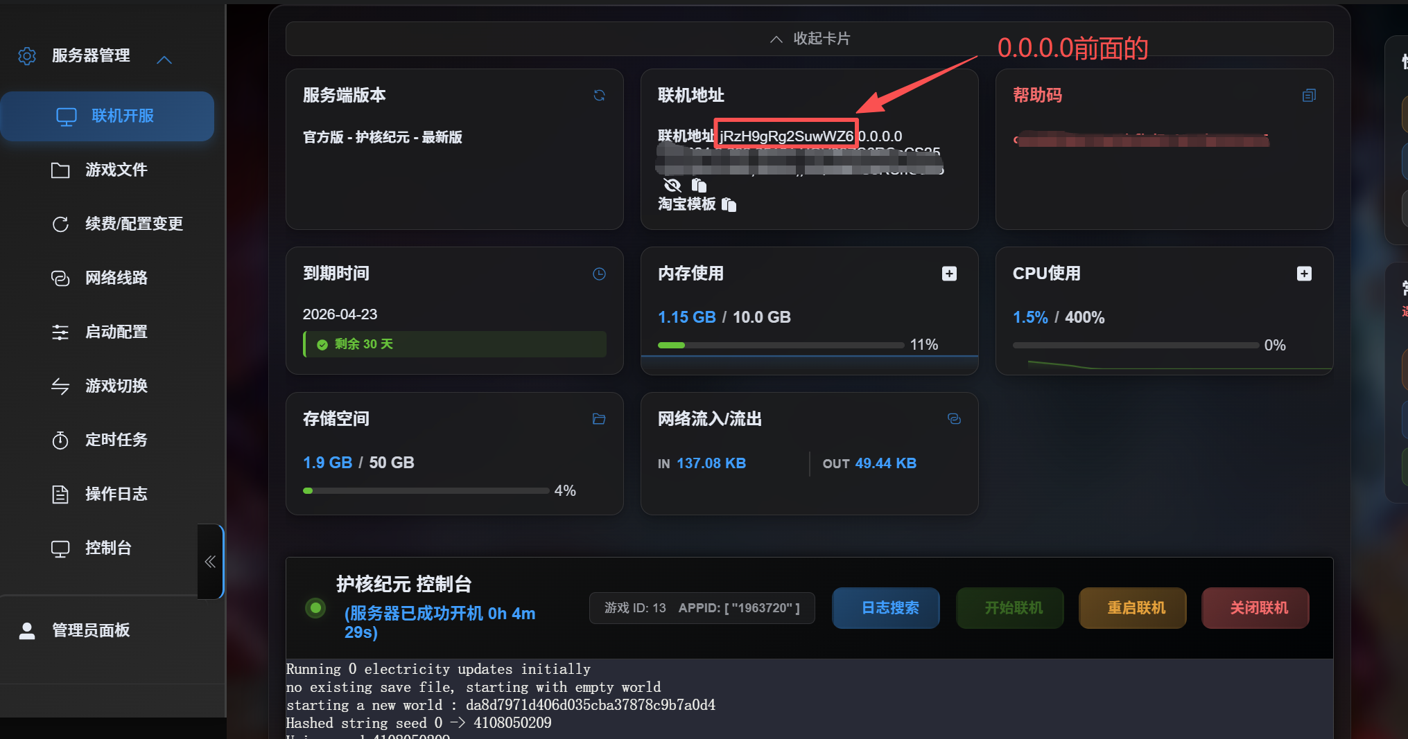 如果您是非官网渠道开服的用户,当拿到面板网页地址后,需要打开网页面板查看联机地址