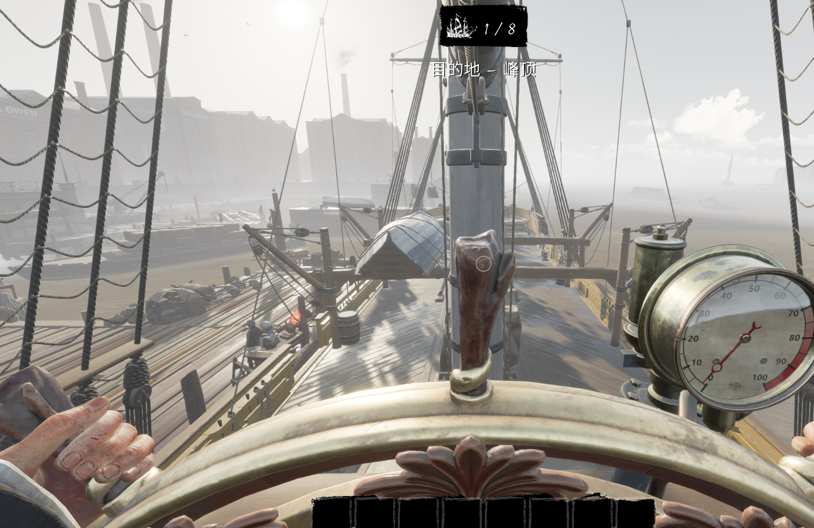 7.启动锅炉后来到甲板,掌舵,启航(按w)