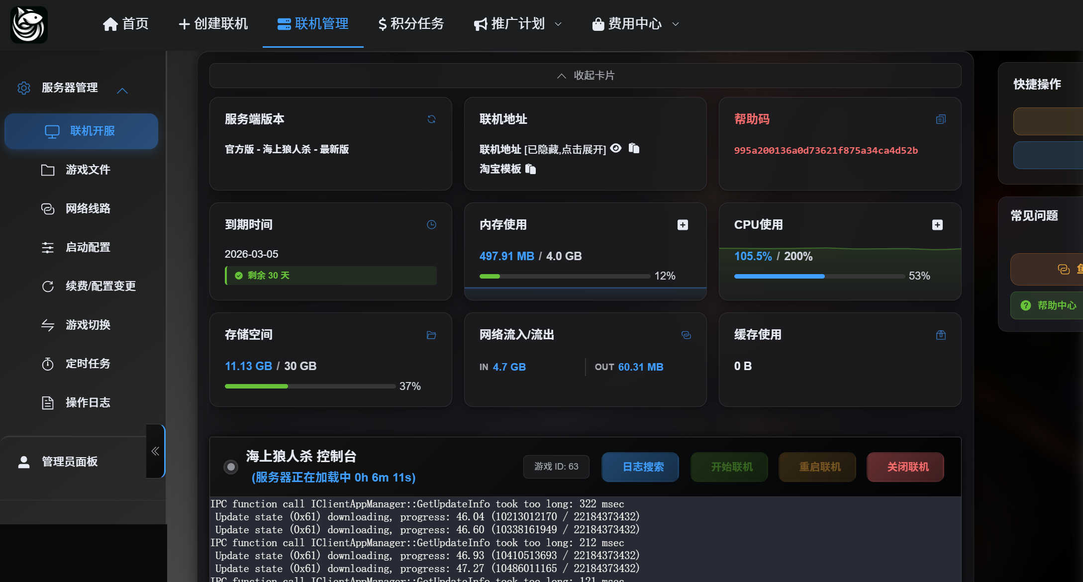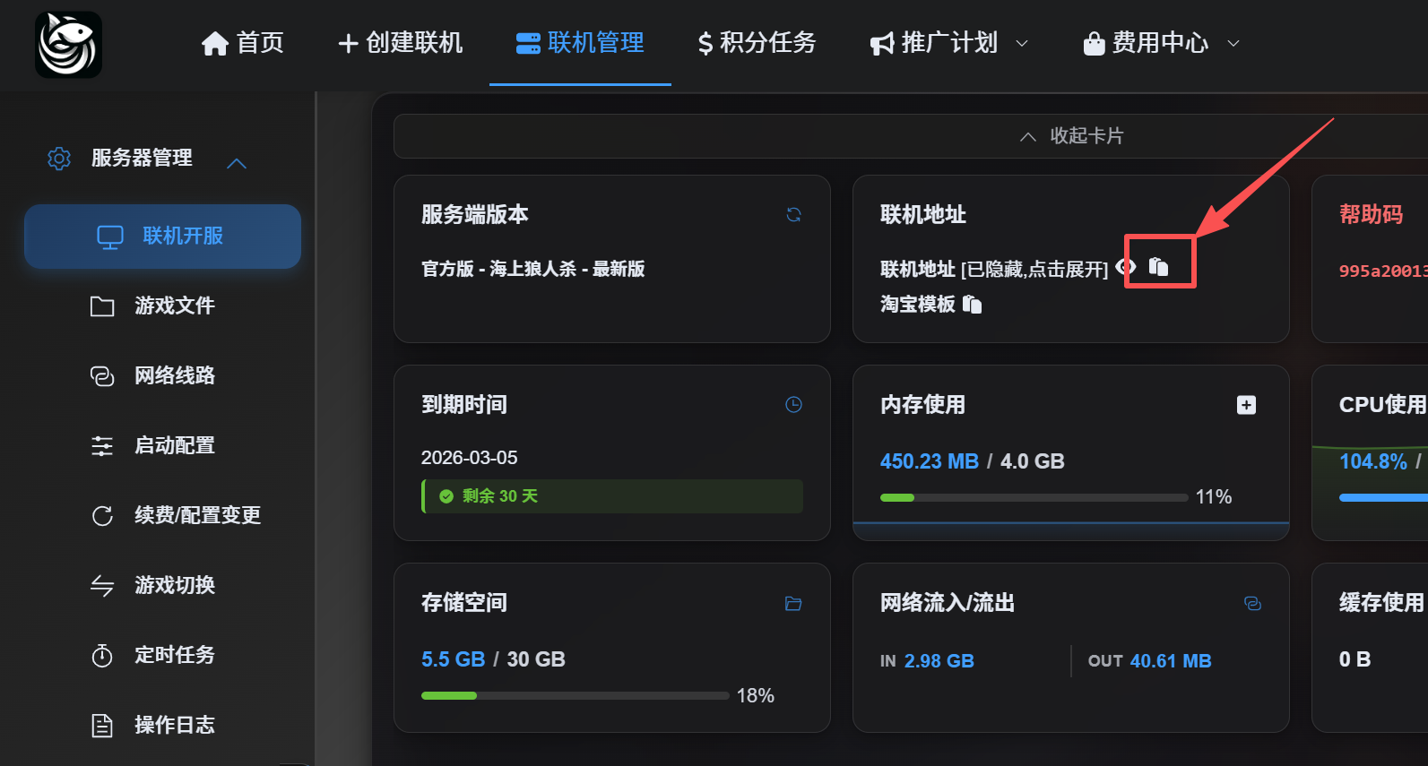 1.进入服务器面板