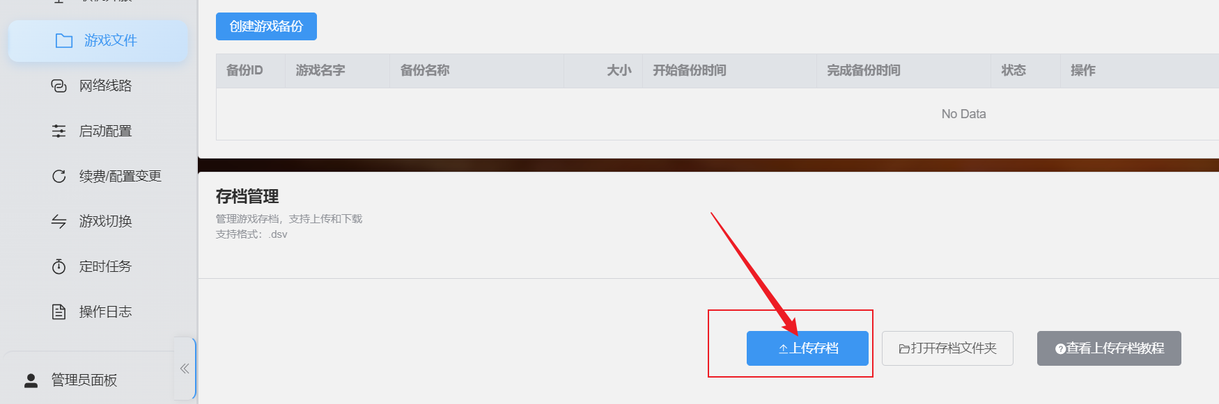 本地存档位置 C:\Users\你的用户名\Documents\Dyson Sphere Program 1.点击游戏文件,将.dsv存档文件上进行上传(存档名字如果为中文请先将名字改为英文,中文会导致无法正常读取) 2.上传完成后点击启动配置,修改存档名字 save1.dsv就取save1保存后重新启动服务器作者:xiaosu 创建时间:2025-09-09 23:48最后编辑:jiao 更新时间:2026-01-31 14:54