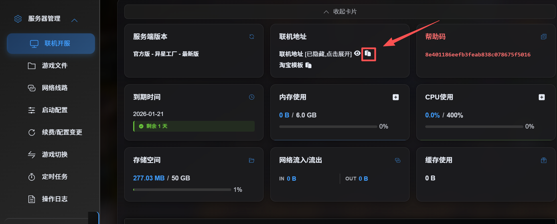 开机,等待开机完成后,点击复制联机地址