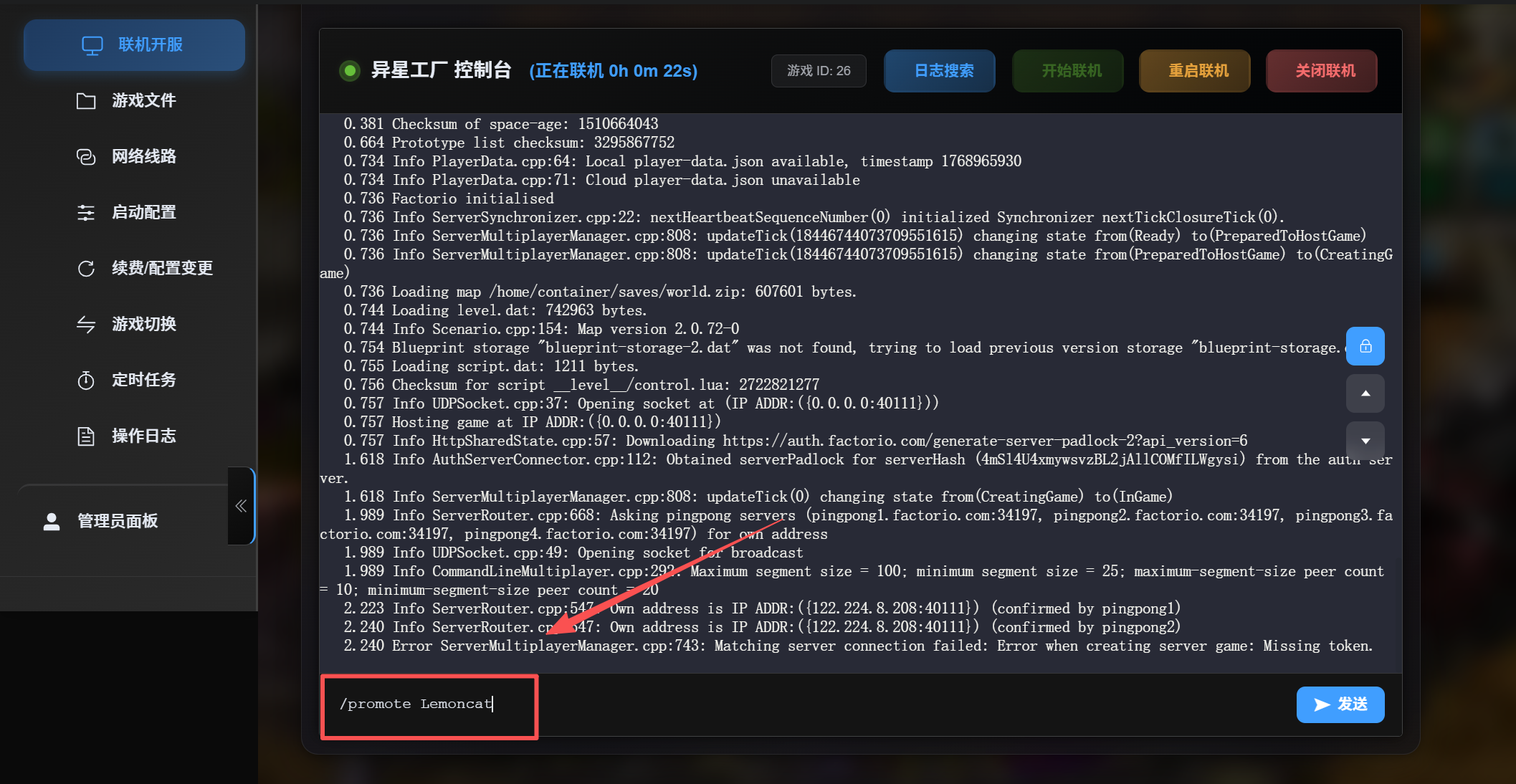 设置指定玩家为管理员指令:/promote 玩家名字