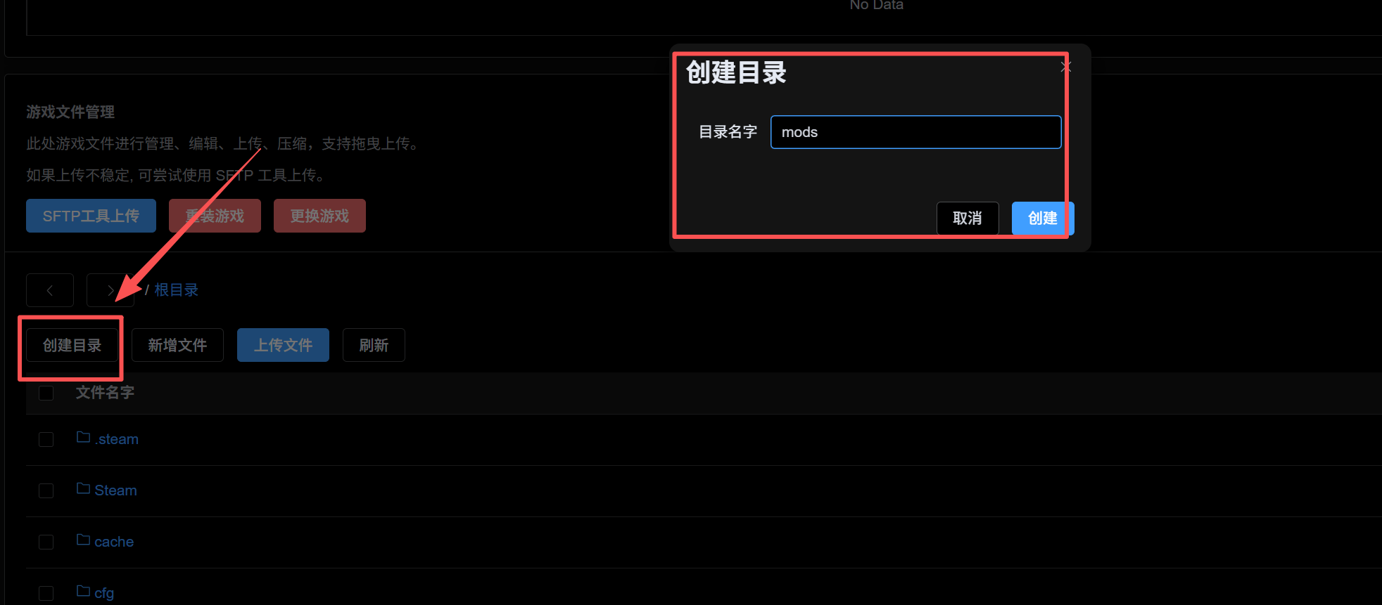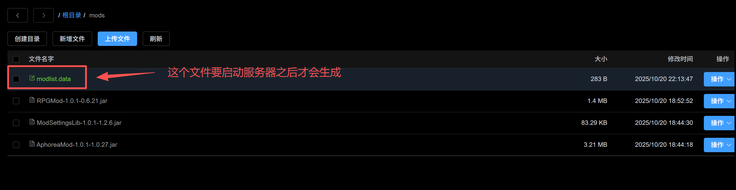 目录 搜索 展开 开服教程添加管理员模组上传到服务器里面死亡不掉落和游戏难度等其他设置存档上传如何服务器存档下载到本地如何删档 暂无相关搜索结果! 阅读次数:172 本文档使用 MinDoc 发布 模组上传到服务器里面 首先右键点击游戏 然后点上面路径里面的“steamapps” 然后根据下图的路径,找到奈斯启示录的本地mod存放位置 来到服务器的游戏文件里 点击创建目录,命名“mods”(如果游戏文件里面有这个文件夹,直接忽略这一步) 然后将本地mod的jar包,放进去 放进去之后的图例作者:box 创建时间:2025-10-20 18:46最后编辑:box 更新时间:2025-12-14 10:48