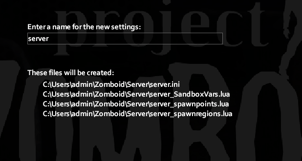 保存后之后,配置文件会在本地生成出来,路径是:%USERPROFILE%\Zomboid\Server