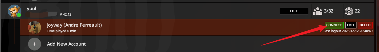 1.steam点击属性 2.点击测试版,选择unstable,等待下载完成 3.点击MULTIPLAYER 4.点击Add Server 5.按照服务器地址,填写方框,如果在面板设置了服务器密码,密码也在这里输入 服务器名称随便填 6.点击Add New Account创建新用户,填写用户名和密码,框选的位置最好不要勾 最后,点击connect,即可进入游戏作者:jiao 创建时间:2025-12-06 21:27最后编辑:jiao 更新时间:2026-01-29 15:50