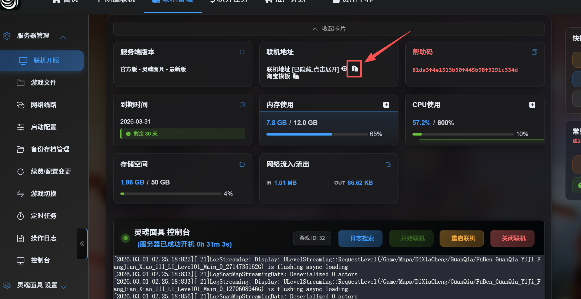 复制联机地址 进入游戏粘贴你的ip,和端口 例如联机地址为s1.okmc.cc:2345 则左边填写s1.okmc.cc 右边填写2345作者:swagcon21 创建时间:2025-04-11 13:57最后编辑:box 更新时间:2026-03-01 10:53